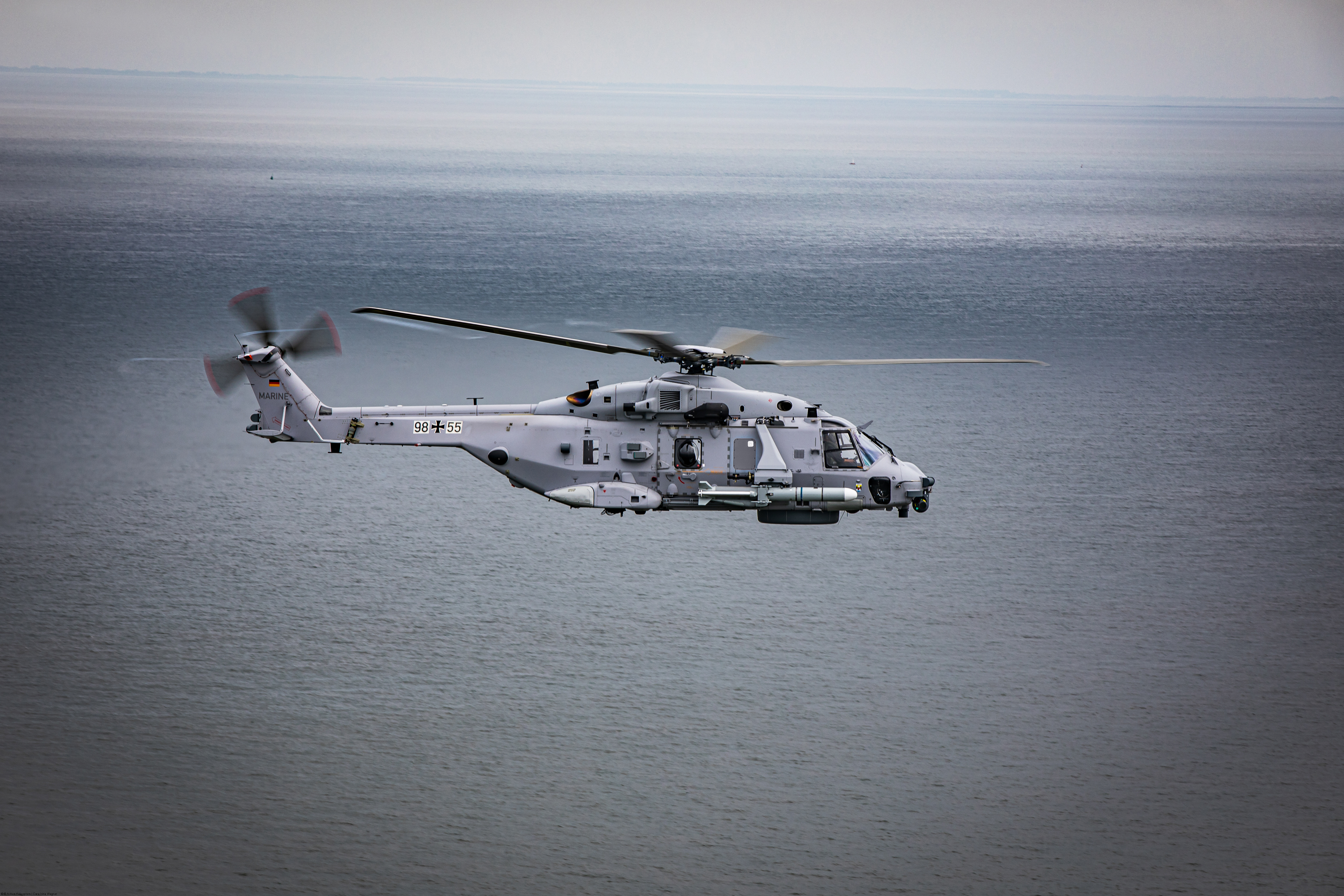 The NH90 Sea Tiger represents the latest evolution of the NH90 NFH, offering world-leading capabilities for Anti-Submarine Warfare (ASW) and Anti-Surface Warfare (AsuW) missions. It has been specifically designed to match the needs of the German Navy for a state-of-the-art anti-submarine warfare helicopter. Novelties include a new Electro-Optical System and improved Electronic Support Measures (ESM). On top, the Sea Tiger is equipped with a dipping sonar, sonobuoys, and weapons (torpedoes and missiles). The shipborne Sea Tiger missions include, in addition to reconnaissance and transport, engaging targets above and below the surface. Those systems have been tested and qualified during different test campaigns in the Mediterranean Sea and North Sea.