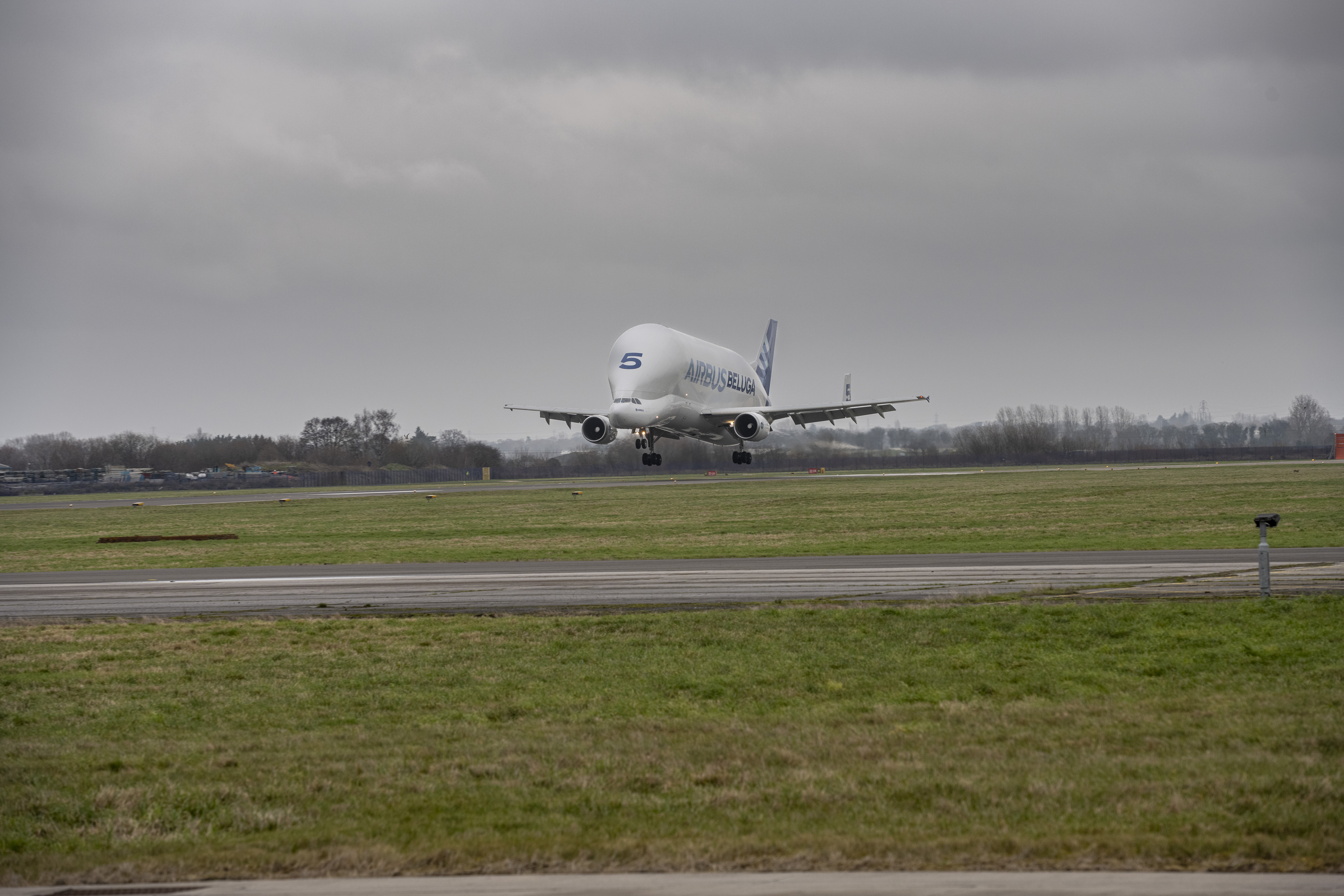 The super jumbo touched down in Broughton, North Wales, at around 11am GMT having completed its final flight from Bordeaux, bringing down the curtain on a remarkable 30-year career as the backbone of Airbus’ industrial logistics. The BelugaST fleet, first launched in 1994, has predominantly been used to transport wings made in the UK to other Airbus facilities around Europe.