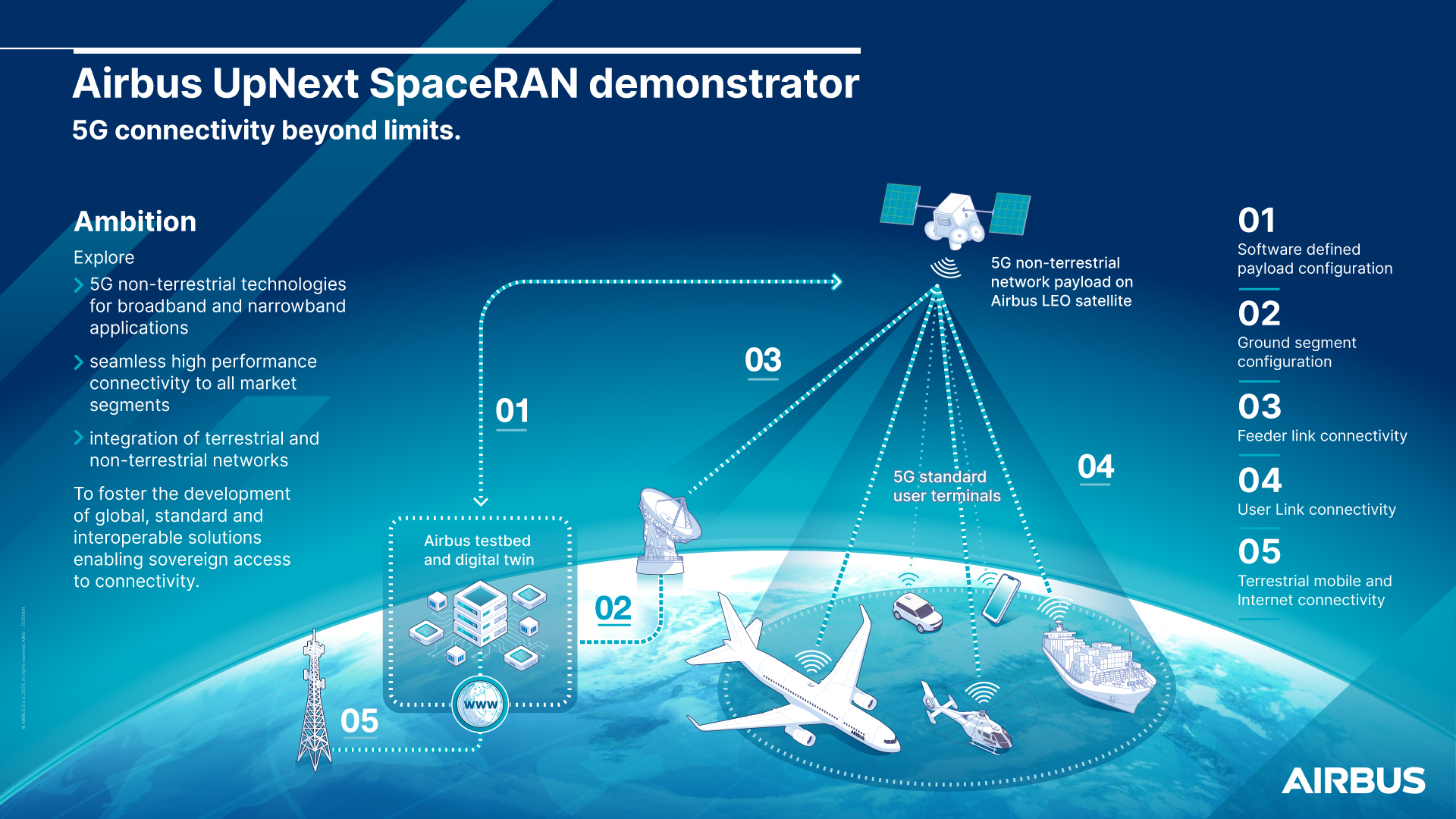 Airbus UpNext launches Airbus UpNext SpaceRAN, a new demonstrator to enable standardised global connectivity by exploring advanced 5G NTN capabilities.